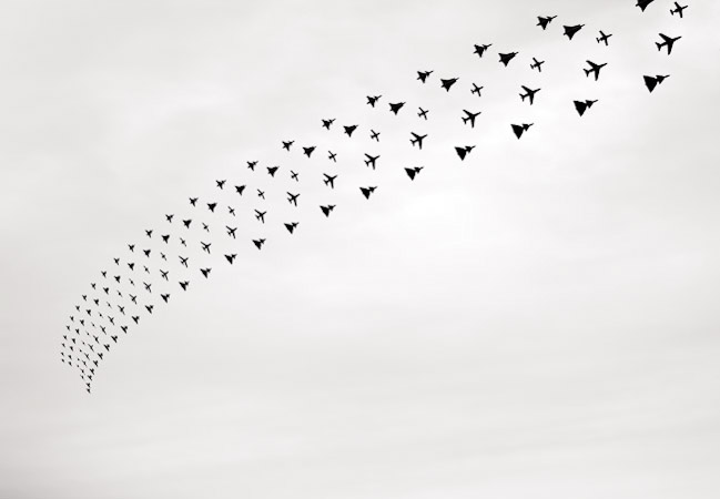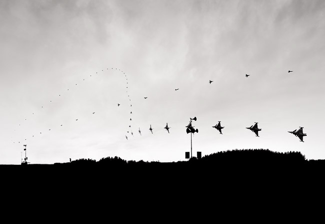 Formation sequence of Gripen, Viggen, Draken, Lansen and SK60 © www.svarteld.com