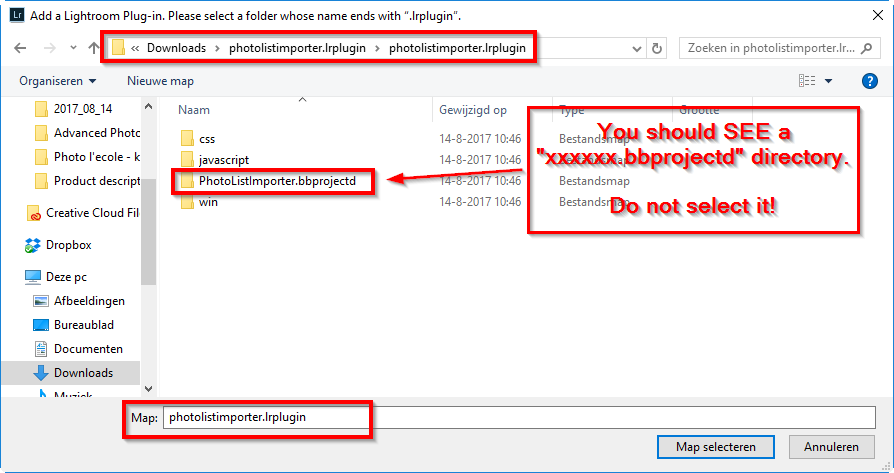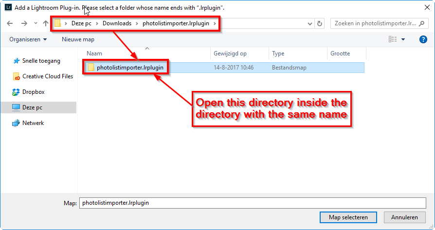 Solution, choose the "xxxx.lrplugin" inside this folder.