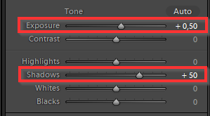 So for Exposure when you want to apply 50% you have to write 50% as 0.5. So set the slider to 0.5 and save it as a preset.